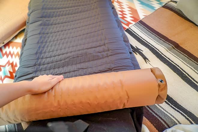 3. もう一度広げ直し、バルブを開け、端から空気を抜きながら出来るだけ小さく巻く。