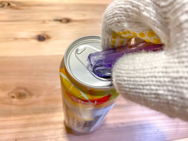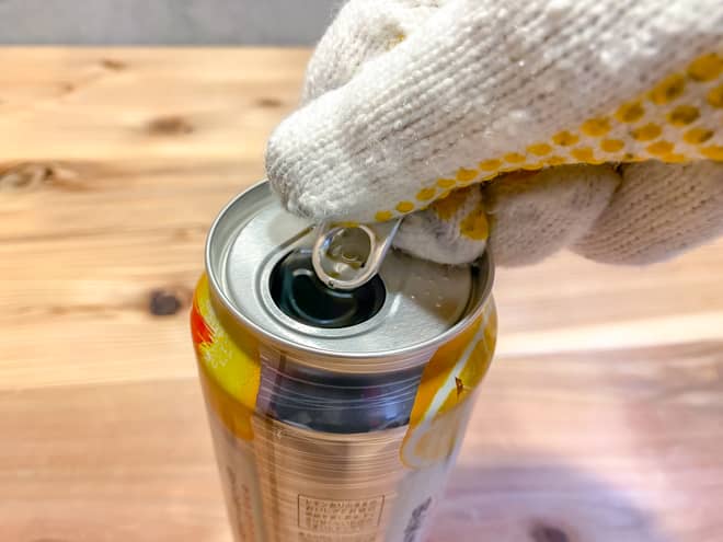 まずは下準備として空き缶のプルタブを取ります。