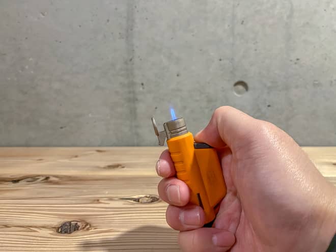 こうした充填式のターボライターは着火スイッチに不具合が起きやすいイメージがあり、半年~1年ぐらい使い続けていると徐々に火が付きづらくなり買い替えるということを経験してきましたが、SOTOのターボライターは1年近く使用しても壊れるそぶりもなく現役で活躍してくれています。