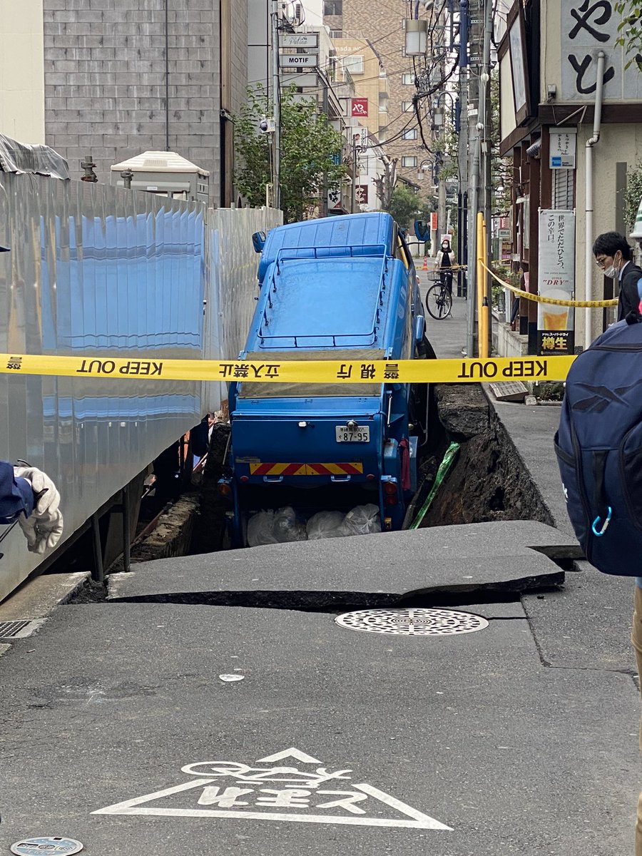 吉祥寺で大規模な地面陥没、ゴミ収集車が落下、またも東京外かく環状道路工事現場付近😨