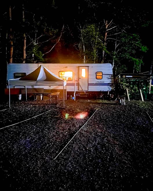 この日はアーリーチェックイン(11:00~)でした。受付時間前に着いた場合、順に番号札を渡され、10:50頃から番号順で受付開始。その後、予約したサイト(区画A、B、フリー)の空いているところを自由に選べました。