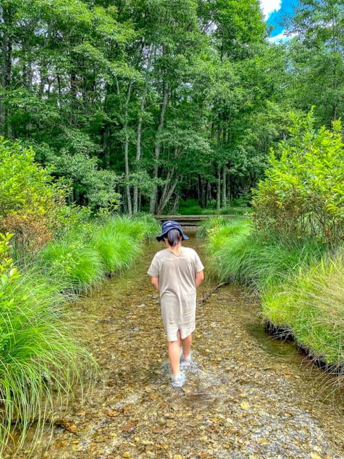 鹿いないかな?と探しながらが楽しいのでぜひ。青くて綺麗な蝶もいます!足元はビーサンではなくてしっかりホールドできるサンダルがあると◎。長靴があれば夏以外の季節も楽しめそう。