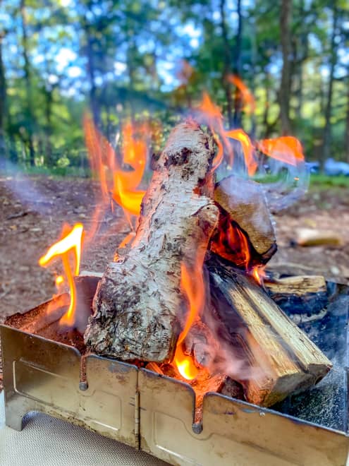 薪の中には少ないですが白樺も!皮がパチパチして良く燃えます!木の種類が違うとこんな燃え方か!と、子どもたち興味津々でした。針金で留められたあの良くある売り方でない、つまりここは絶対に拾うあの針金が落ちてないキャンプ場となります!いいよね!