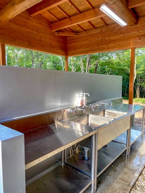 ちなみに。8月で朝の陽が一番多く入るのはA21(区画サイトA)で、完全乾燥撤収したいならここ。あとは通常チェックアウトの11:00ではちょっと追いつかなさそう。