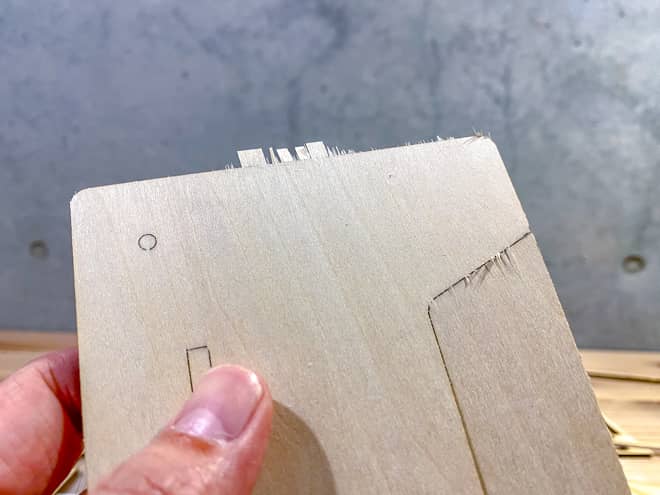 なるべく丁寧に作業をしていたのだが、どうしても細かなささくれやバリが出てしまう部分は残ってしまう。こうした部分はカッターやニッパーなどでカットして、目の粗い紙やすりや木材用やすりでキレイにすると良いだろう。