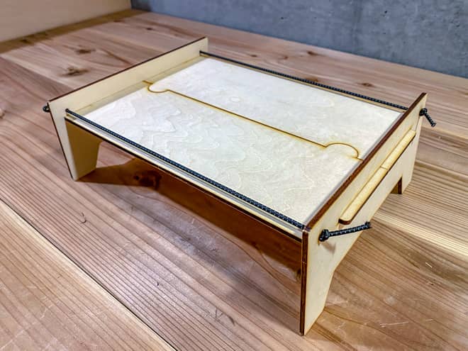 ちなみに素材のスペースが余ったからなのか、元から織り込み済みなのかは分からないが、ミニテーブルのおまけでスマホスタンドと鍋敷きもセットになっている。
