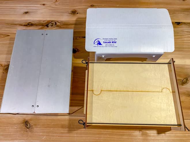 コンパクトテーブル界の最軽量代表、カスケードワイルドの「ULフォールディングテーブル」と比べてみると、キャンプ工作キットの方がほんの少しだけ広くはあるが、天板の大きさだけでは3つの製品に大きな違いは無さそうだ。