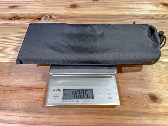 SOTOのフィールドホッパーは収納袋に入れた状態で400.5g。これでも充分軽いのだが、同じ重さならキャンプ工作キットを2つ持って行ける、と考えるといかがだろうか。