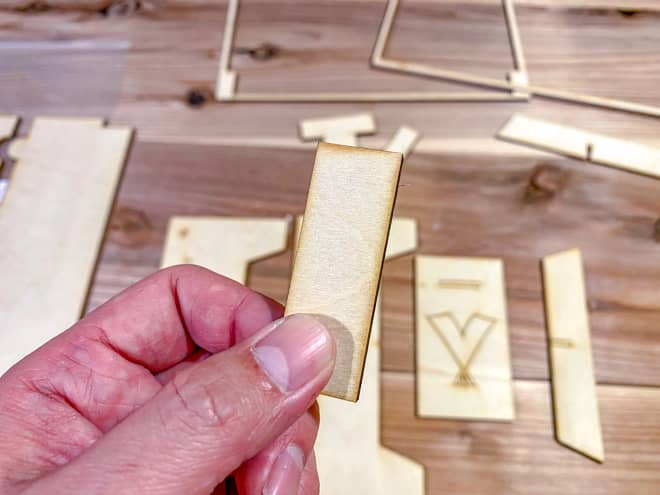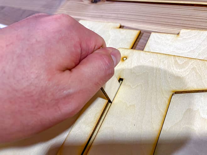 セット内容の2枚の木板はレーザーカットされているので、軽く押すだけでペキペキと型から抜けていく。力加減を間違えて本体を割ってしまわないように丁寧に型抜きを楽しもう。キレイに抜けるとちょっとした快感もあるぞ。