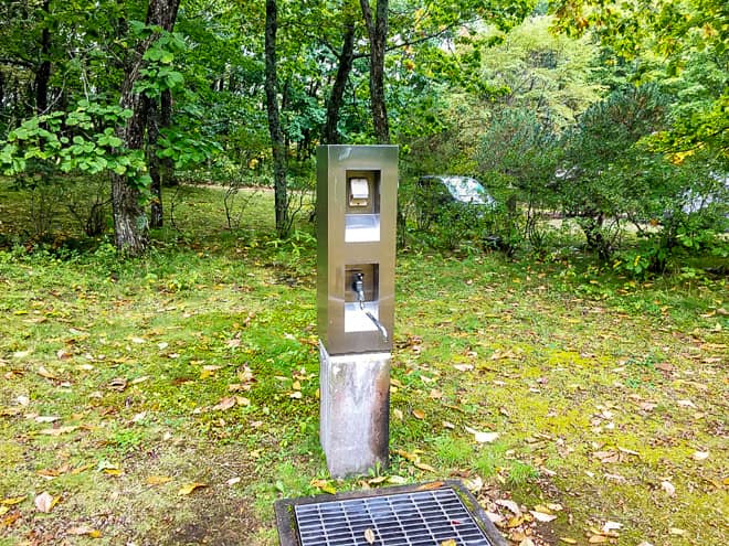 キャンプ場の一番奥にあるため、トイレや炊事場へは少し距離が離れていますが、サイトには電源だけでなく水道も完備されているので不便はなさそうです。