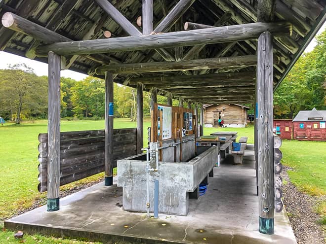 炊事棟も新しくはありませんが、きれいに清掃されていました。またポスターやチラシがあり道東の観光情報も入手できます。