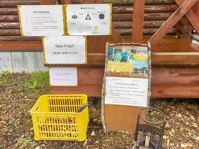 管理棟では薪などの販売もありました。薪は1本から購入できて1本100円です。管理棟の前には、キンドリングクラッカーという薪を割るツールが置かれていて自由に体験できます。