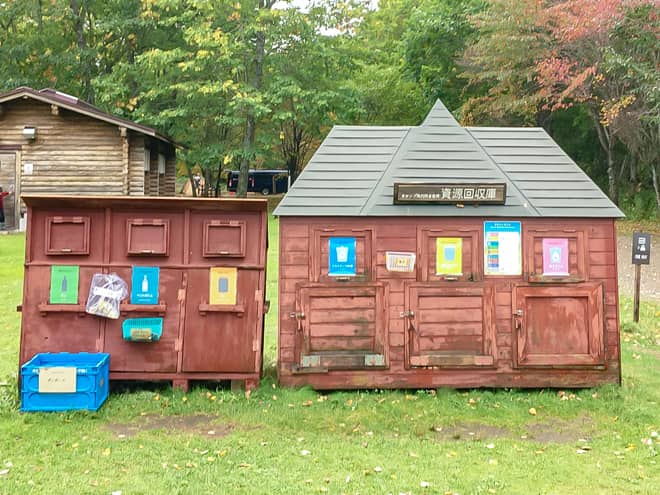 またビン、ペットボトル、缶の資源ごみの回収BOXもあります。