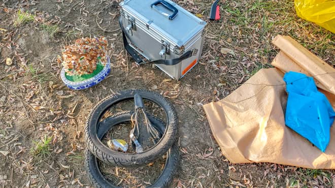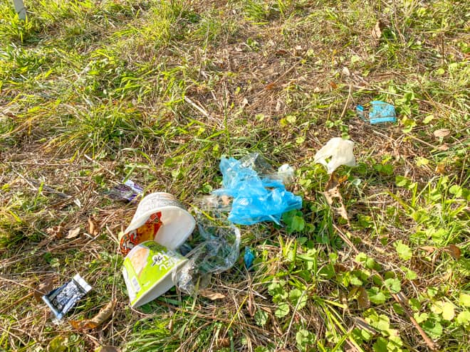 郷土の森公園バーベキュー場は2021年11月6日に利用が再開されてから半月しか経っていないが、ゴミの中にはそれよりも前に捨てられていた可能性が高いものもある。