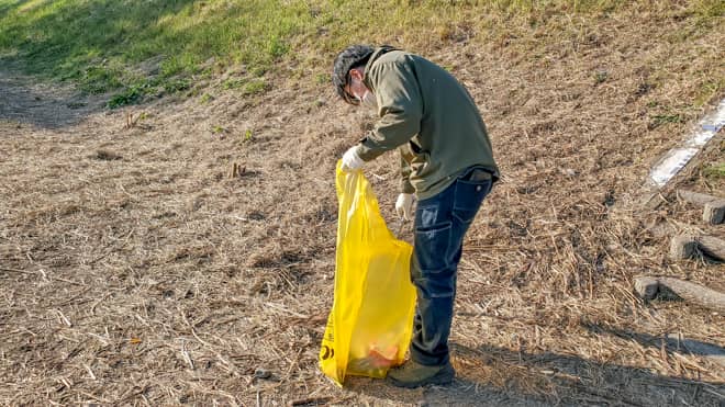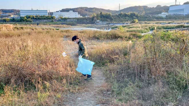 タカハチさんにお話を伺うと、半年ほど前から一人で多摩川周辺エリアのゴミ拾いを始めたとのこと。きっかけはコロナによって地域に活気が無くなってしまった際、自分になにか出来ることはないかという思いに至ったようだ。
