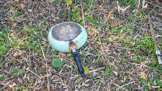 キャンプやバーベキューで出るようなゴミだけで無く、自宅から捨てに来ているように感じるゴミも複数見つかった。こうしたゴミは、人目に付きづらい木や草の生い茂った場所に隠すように捨てられていることが多い。