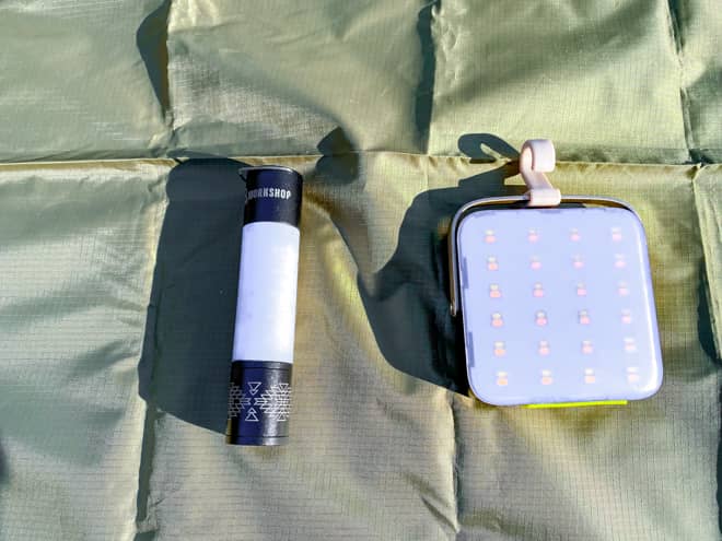 収納サイズと利便性を考慮すると、ランタンはLED一択。趣味枠としてガスランタンやオイルランタンを持って行くのも有りだと思いますが、そうすると燃料ボトルも別途用意しなきゃいけないので、持ち運びに気を使う必要あり。ランタンにもモバイルバッテリーにもなるLEDランタンが優秀すぎて、他の選択肢は消滅しました。