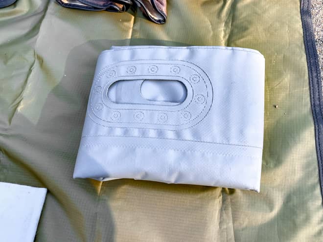グランドシート1枚でサイトの印象がガラっと変わるので、いくらか値段が高くても自分好みの色とサイズを探し求めた方がキャンプ中のモチベーションが上がります。裏面にアルミが蒸着されていて、地面からの冷気を遮断してくれるのもタープ泊の時に助かります。