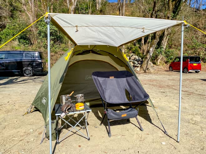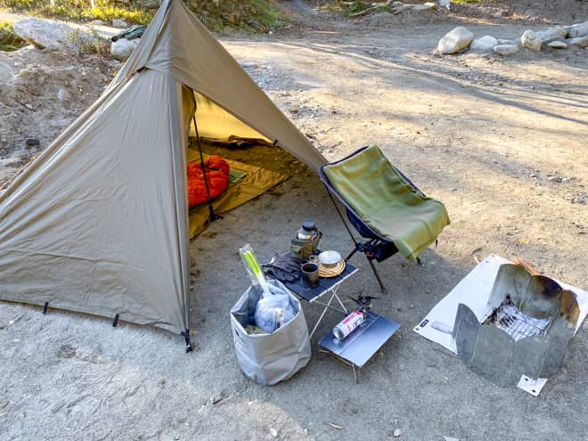 地べたに直置きする道具をなるべく少なくするとサイトの見た目が整って見えるので、見映えを気にするならテーブルは複数用意してマルチ運用がおすすめ。