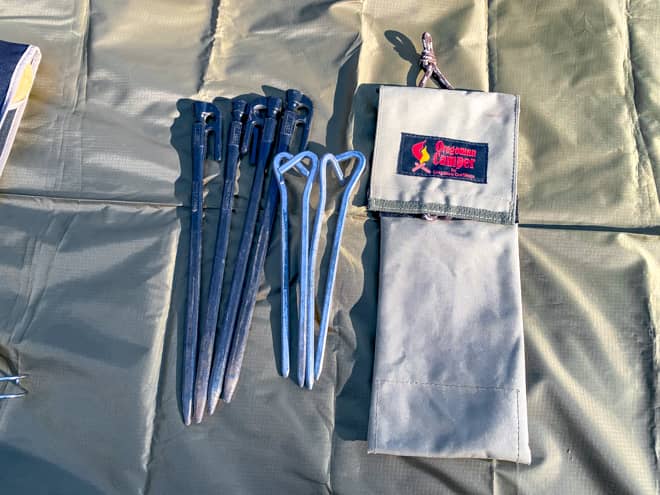 鍛造ペグを4本、ユニフレームのジュラルミンペグを4本、合わせて8本持って行けば大抵の場合はなんとかなります。積載重量を考慮するならチタンペグを選択するのも有り。ペグは軽くて丈夫なものであるほど価格は高くなるので、そのあたりはお財布と相談ですね。