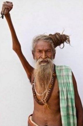 インド人男性、45年間右腕を上げたまま生活したため右腕が完全に固まってしまう