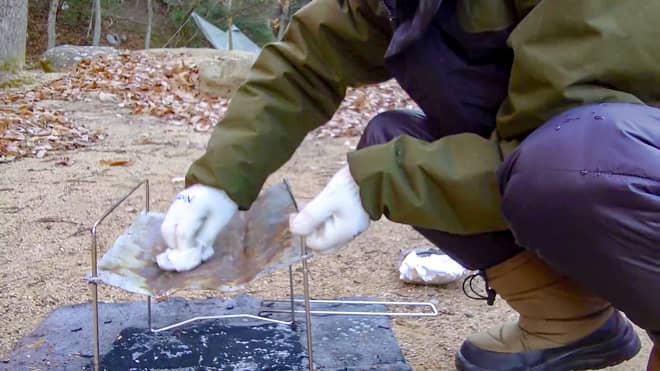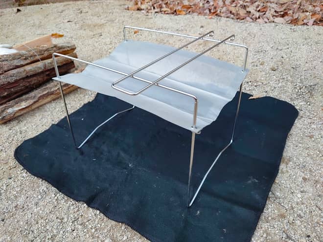 トップリッジが平行になっているので、五徳や網を置けば焚き火料理が簡単にできます。また、火床はメッシュになっており、灰が落ちにくいので火床の下でピザやグラタンを焼くこともできます!