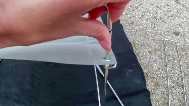 火床になるメッシュにフットパイプを挿します。(ハの字に広げておくと次のパーツを差し込みやすい)
