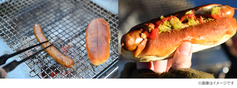 来年1月の販売を前に、今回の参加者さんに特別にFUCHITEIさんの焚き火ホットドッグをご提供!