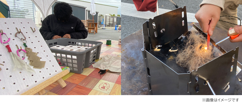 テント廃材で作るキーホルダー作り/火起こし体験