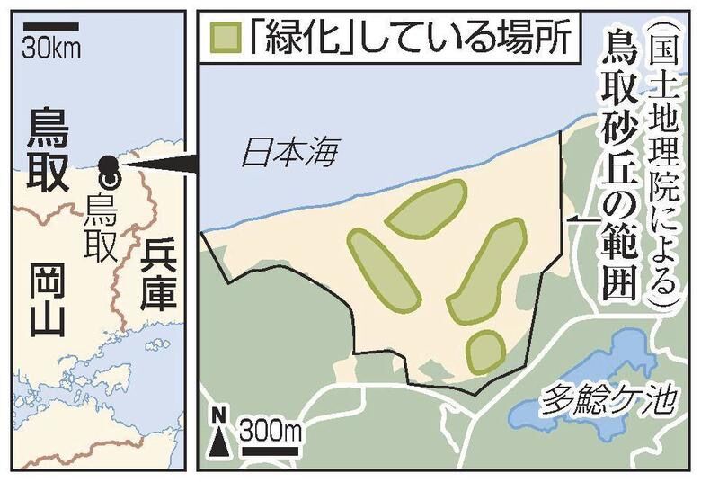 鳥取砂丘(鳥取市)が、雑草の増加による「緑化」に悩まされている。ボランティアらによる除草が行われてきたが、新型コロナウイルスの影響で参加者が半減。関係者は「砂丘本来の景観が失われてしまう」と危機感を募らせる。