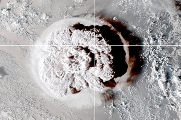 トンガの観測機関によると、幅約5キロの噴煙が高さ約20キロまで上昇。噴煙は半径約240キロに拡散した。海底火山が噴火する場合、溶岩が水にぶつかることで爆発の大きさが増すという。