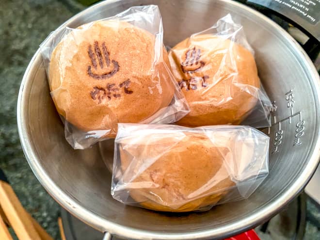 時間帯によって提供できる数に限りがあるようで、この日は3個までしか注文できず。設営後にあたためて美味しくいただきました。