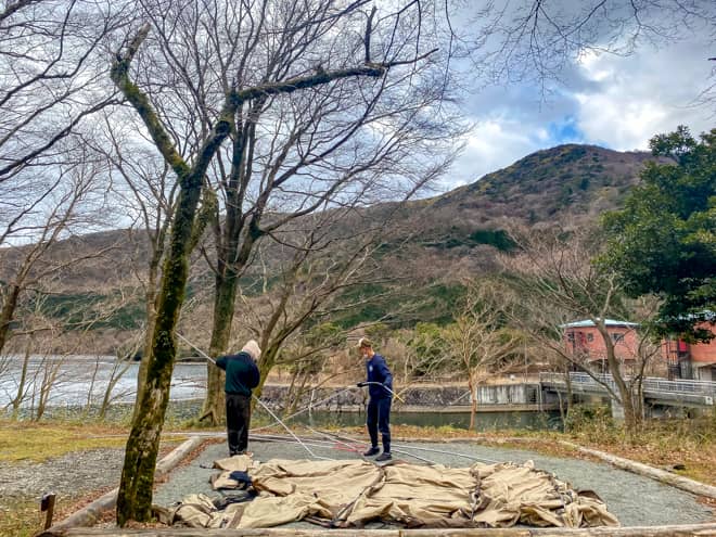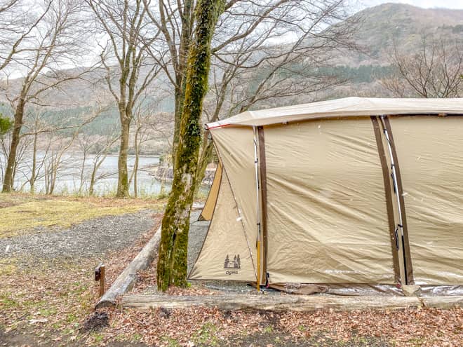 芦ノ湖キャンプ村で湖畔キャンプ!オートサイトは広いけどテントサイトは狭いので2区画利用がおすすめ