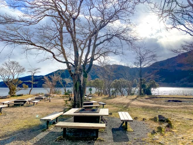 キャンプ場の目の前が芦ノ湖