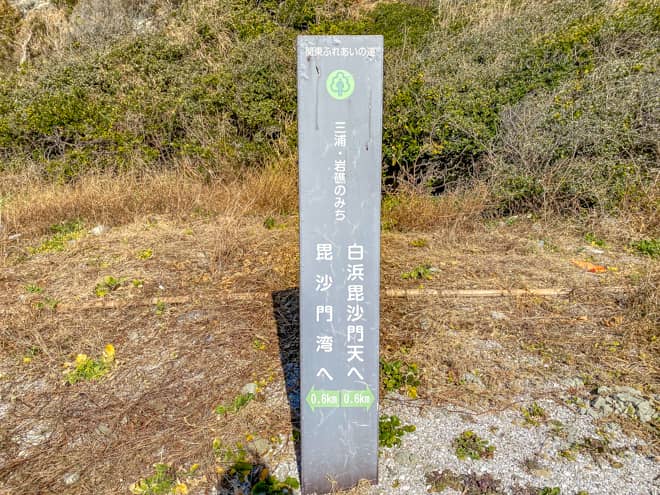 毘沙門天浜から20分ほど歩いていくと漁港のある毘沙門湾まで繋がっています。毘沙門湾には「盗人狩」という断崖絶壁の景勝地もありますので、時間がある時は海岸沿いに続く「岩礁のみち」を散策してみてはいかがでしょう。また歩いていくには少々遠いですが、毘沙門漁港の近くには汲み取り式の公衆トイレも設置されています。