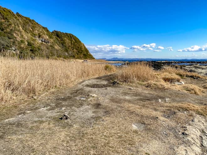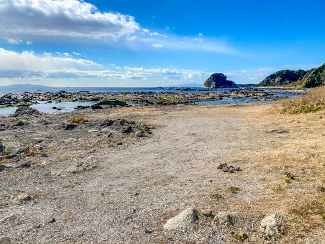 駐車場からそのまま10分程度歩いていくと、東風崎という景勝地に着きます。東風崎の先端は釣りスポットとしても有名で、クロダイやチヌが釣れるそうですが、キャンプをするならその手前辺りが良いポイントかも知れません。ただし車からはかなり離れることになりますので、それだけは注意しておいた方が良いでしょう。