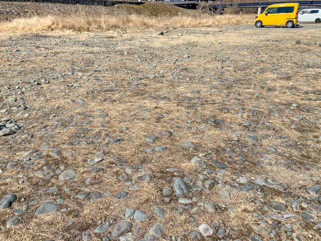 河川敷には大きな石が転がっている場所も多く、不意に乗り上げたりすると車が傷付く可能性もあります。場内は徐行しながら安全運転を心掛けましょう。