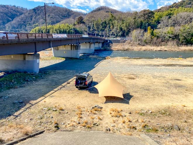 神奈川「八菅橋河川敷」無料キャンプができる中津川沿いの野営スポット紹介