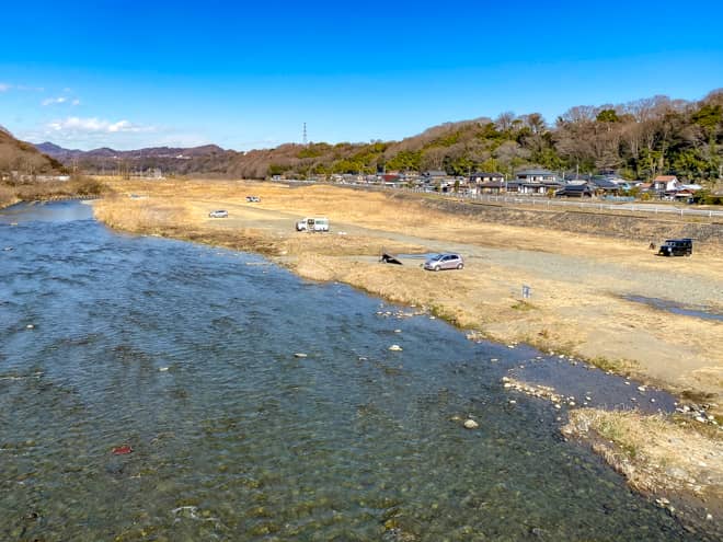 テントを張るスペースも下流の方が広く、八菅橋から離れるほど車の走行音も気にならなくなるので、ファミリーで楽しむなら下流側がおすすめです。