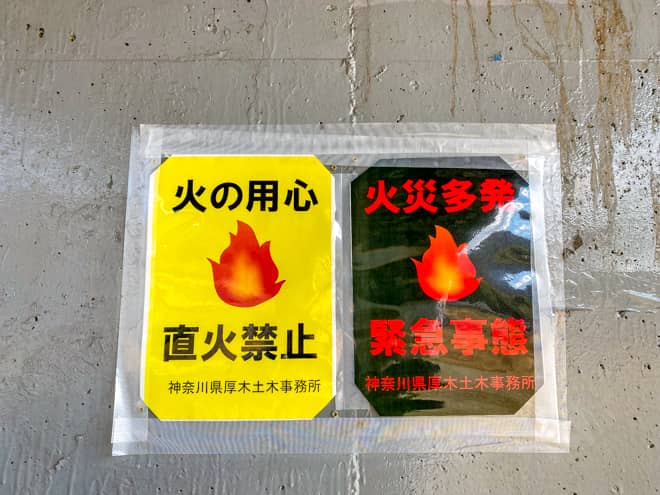 八菅橋河川敷ではキャンプ中の焚き火から枯草に燃え広がる火災が複数回発生しており、その度に消防車や緊急車両が出動して消火にあたっています。空気が乾燥している冬場は特に火事が起きやすいので、火の取り扱いには細心の注意を払うようにしましょう。