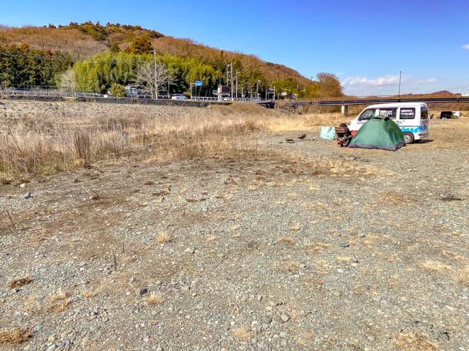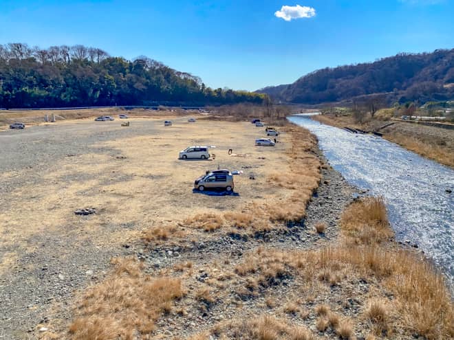 河川敷には仮設トイレも設置されており、都心からのアクセスが良く、週末になると多くのキャンパーが集まる人気のキャンプスポットをご紹介します。