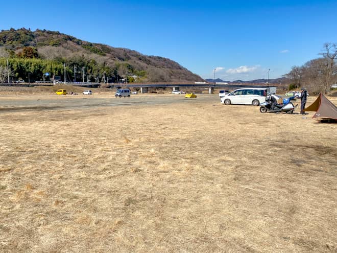 無料で利用できるエリアとしては県内随一の広大なスペースを誇り、ソーシャルディスタンスを保ったオートキャンプを楽しめるのが高田橋多目的広場の魅力です。まるでどこまでも続くかのような河川敷が広がっており、下流に行けば行くほど静かに過ごせるのはメリットですが、トイレから遠くなってしまうのが難点。さらに公衆トイレには利用時間制限があるので、宿泊キャンプでは少々難儀しそうです。