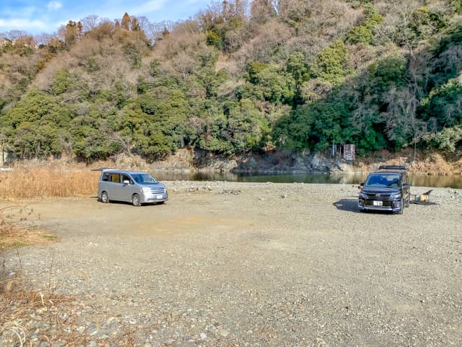 中津川沿いの河川敷の中でも広大なスペースを誇るのが八菅橋河川敷です。圏央道「相模原愛川IC」から車で10分程度の距離にあり、都内からでも1時間程度で到着するアクセスの良さが魅力。思い立った時に気軽に利用ができる野営地として人気です。過去、焚き火から燃え広がった火災が複数回発生しており、利用者マナーが問われるキャンプスポットとなっています。