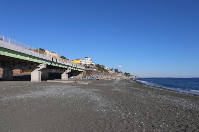 梅沢海岸は投げ釣り発祥の地と言われており、無料の駐車場や公衆トイレが設置されていて釣り人から人気の高いスポットです。海岸線には大磯と小田原を結ぶ西湘バイパスが通っており、高架下は地元の人達がバーベキューを楽しむ穴場のスポットです。休日や夏シーズンは大変混み合いますが、シーズン外の平日は海を眺めながらキャンプを楽しめる貴重な海岸となります。