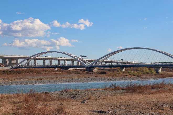 中津川、相模川、小鮎川の3本の川が合流する地点、厚木市と海老名市を結ぶ「あゆみ橋」の上流に広がっているのが、相模川三川合流地点河川敷です。他の河川敷と異なり、車の乗り入れが出来ないのは難点ですが、その分キャンプスペースを広く確保できるのでゆったりしたキャンプを楽しめます。また駐車場のゲートは夜間閉鎖されるので、車の出入りが出来なくなる点にも注意が必要です。