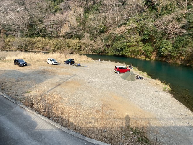 中津川の最上流、日向橋の下流に誰からも知られずひっそりと存在しているのが宮本河川敷です。駐車場のスペースが狭く、人が1人通れる幅の堤防端の先端から飛び降りて草むらを搔き分けて進むか、駐車場から民家の間を5分ほど歩いて狭い階段を上り下りした先の「地元の子供達か釣り人ぐらいしか行かないような場所」にあるので、キャンプ道具がすべてバックパックに収まるUL系キャンパーにしかおすすめしません。民家も近いので、大きな音や迷惑行為は即通報に繋がります。現時点ではGoogle MAPやネット上にも一切情報が無い超ドマイナーな野営地です。