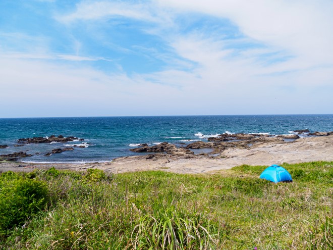 毘沙門天浜は車で海岸まで下りてこられる道があり、オートキャンプのように車のすぐ側でテントを張ってキャンプを楽しむことも出来るスポットです。ただし海岸までは無舗装の難路となっているので、オフロード仕様車でないと厳しく、さらにトイレや水道が設置されていないので、そういう意味でも上級者向けのまさに「野営地」といった場所です。絶景ポイントも多く、キャンプをしながら大自然を感じられる人気エリアですが、利用者マナーの悪化によって海岸入口が閉鎖された過去もあります。モラルを持った利用を心掛けましょう。
