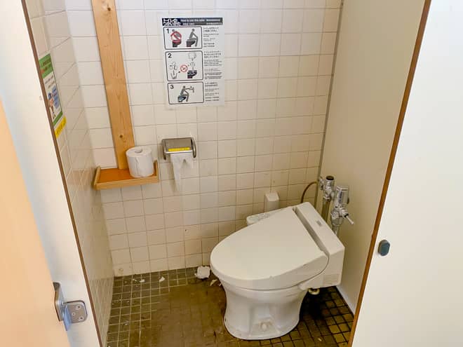 ただし定期的に清掃されているとは言え、利用者が多すぎるというのもありますが、決して綺麗とは言いづらい状態です。トイレットペーパーは設置されていますが、予備で持って行った方が安心だと思います。