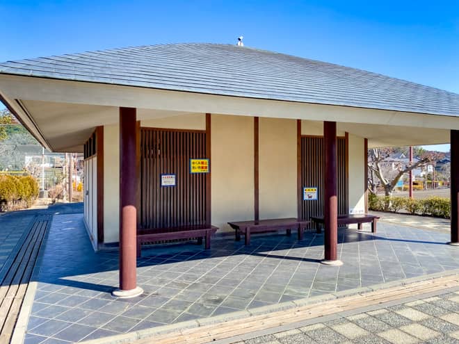 田代運動公園には公衆トイレが設置されているので、中津川河川敷でキャンプを楽しむ人たちはこちらのトイレを利用させてもらっています。
