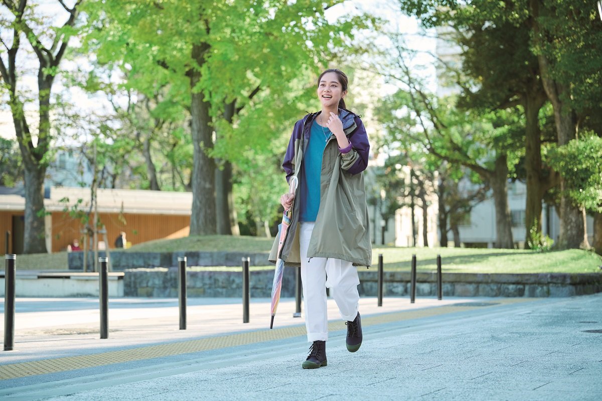 新たに発売する「ヨゴレニクイパンツ」「ヨゴレニクイベーカーパンツ」(いずれも1900円)は、汚れにくい素材にはっ水加工を施し、急な雨にも対応できるようにした。